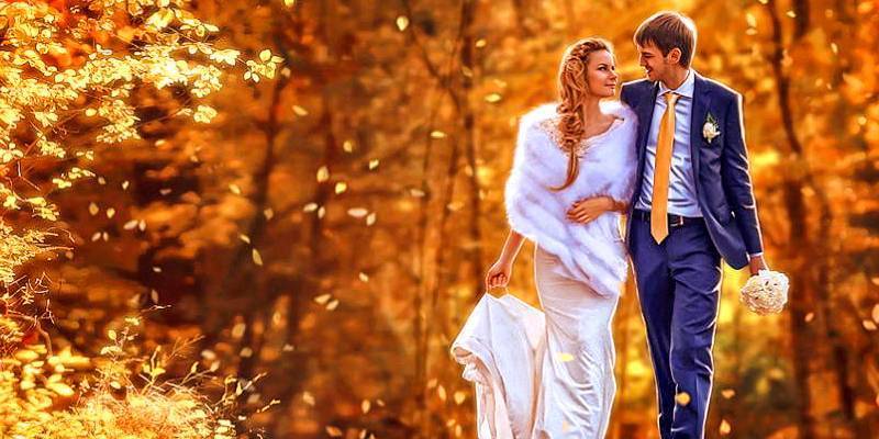 Преимущества и недостатки свадьбы в октябре. Особенности октябрьской свадьбы. Стилистика, наряды, декор. Благоприятные даты и приметы.